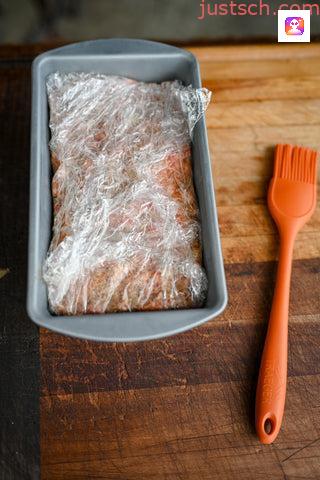 Line a loaf pan with saran wrap. This recipe makes 2 loafs, so if you have 2 pans, do this twice.