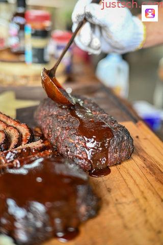 Glaze with additional BBQ sauce.